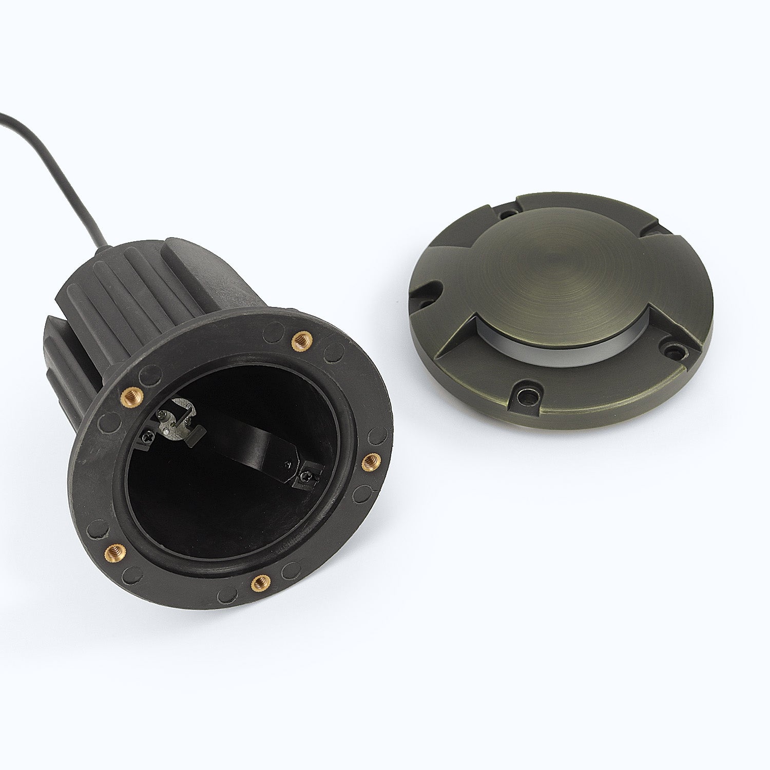 LT2204B Two-Direction Turret MR16 In-Ground Well Light are with 2 opposite openings for 2-direction illumination and canister structures to ensure easy installation in harsh environments. The brass top with a seal ring can get more effective to protect from the bulb water and harsh environments.